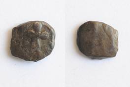 | Description / विवरण | On the obverse Shiva standing with kamandal in hand and beside tree, on upper side wheel is depicted and reverse is blurred. |