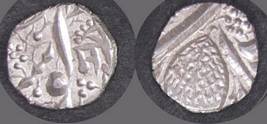 | Description / विवरण | Descrpn./Obv In the centre, a chhatra with Sa and Ta in Gurumukhi script on the left and right of its shaft; traces of the Persian legend seen on the obverse of the bigger Nanakshahi coins of Amritsar mint are also seen. Descrpn./Rev Big peepal leaf and traces of the Persian legend seen on the reverse of the bigger Nanakshahi coins of Amiritsar mint - Shri Amritsarjiv zarb [VS Year] Takht maimanat julus manus Akal Bakht. Especially traces of alif of Akal and te of Takht and maimanat are seen |