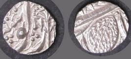 | Description / विवरण | Descrpn./Obv In the centre, a chhatra with Sa and Ta in Gurumukhi script on the left and right of its shaft; traces of the Persian legend seen on the obverse of the bigger Nanakshahi coins of Amritsar mint are also seen. Descrpn./Rev Big peepal leaf and traces of the Persian legend seen on the reverse of the bigger Nanakshahi coins of Amiritsar mint - Shri Amritsarjiv zarb [VS Year] Takht maimanat julus manus Akal Bakht. Especially traces of alif of Akal and te of Takht and maimanat are seen |