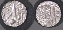 | Description / विवरण | Descrpn./Obv In the centre, a chhatra with Sa and Ta in Gurumukhi script on the left and right of its shaft; traces of the Persian legend seen on the obverse of the bigger Nanakshahi coins of Amritsar mint are also seen. Descrpn./Rev Big peepal leaf and traces of the Persian legend seen on the reverse of the bigger Nanakshahi coins of Amiritsar mint - Shri Amritsarjiv zarb [VS Year] Takht maimanat julus manus Akal Bakht. Especially traces of alif of Akal and te of Takht and maimanat are seen |