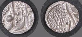 | Description / विवरण | Descrpn./Obv In the centre, a chhatra with Sa and Ta in Gurumukhi script on the left and right of its shaft; traces of the Persian legend seen on the obverse of the bigger Nanakshahi coins of Amritsar mint are also seen. Descrpn./Rev Big peepal leaf and traces of the Persian legend seen on the reverse of the bigger Nanakshahi coins of Amiritsar mint - Shri Amritsarjiv zarb [VS Year] Takht maimanat julus manus Akal Bakht. Especially traces of alif of Akal and te of Takht and maimanat are seen |