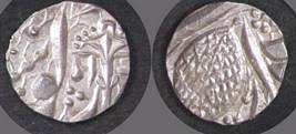 | Description / विवरण | Descrpn./Obv In the centre, a chhatra with Sa and Ta in Gurumukhi script on the left and right of its shaft; traces of the Persian legend seen on the obverse of the bigger Nanakshahi coins of Amritsar mint are also seen. Descrpn./Rev Big peepal leaf and traces of the Persian legend seen on the reverse of the bigger Nanakshahi coins of Amiritsar mint - Shri Amritsarjiv zarb [VS Year] Takht maimanat julus manus Akal Bakht. Especially traces of alif of Akal and te of Takht and maimanat are seen |
