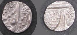 | Description / विवरण | Descrpn./Obv In the centre, a chhatra with Sa and Ta in Gurumukhi script on the left and right of its shaft; traces of the Persian legend seen on the obverse of the bigger Nanakshahi coins of Amritsar mint are also seen. Descrpn./Rev Big peepal leaf and traces of the Persian legend seen on the reverse of the bigger Nanakshahi coins of Amiritsar mint - Shri Amritsarjiv zarb [VS Year] Takht maimanat julus manus Akal Bakht. Especially traces of alif of Akal and te of Takht and maimanat are seen |