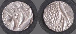 | Description / विवरण | Descrpn./Obv In the centre, a chhatra with Sa and Ta in Gurumukhi script on the left and right of its shaft; traces of the Persian legend seen on the obverse of the bigger Nanakshahi coins of Amritsar mint are also seen. Descrpn./Rev Big peepal leaf and traces of the Persian legend seen on the reverse of the bigger Nanakshahi coins of Amiritsar mint - Shri Amritsarjiv zarb [VS Year] Takht maimanat julus manus Akal Bakht. Especially traces of alif of Akal and te of Takht and maimanat are seen |