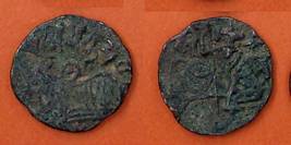 | Description / विवरण | Descrpn./Obv Recumbent bull facing left, wearing jhula (saddle cloth), with trisula (trident) symbol on rump. Above, legend in Sarada script Sri Samantadeva . Descrpn./Rev Rider with lance on caparisoned horse facing right. On left, Sarada letter bhi and on right, Sarada letter ta |