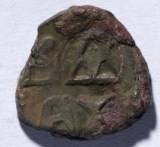 | Description / विवरण | Triangle shaped Obverse A part of tree is visible on the left upper corner, a three arched hill within a circular enclosure, Legend Sh i va ma in Brahmi character below Reverse not clear but traces of a circular enclosure. |