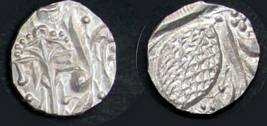 | Description / विवरण | Descrpn./Obv In the centre, a chhatra with Sa and Ta in Gurumukhi script on the left and right of its shaft; traces of the Persian legend seen on the obverse of the bigger Nanakshahi coins of Amritsar mint are also seen. Descrpn./Rev Big peepal leaf and traces of the Persian legend seen on the reverse of the bigger Nanakshahi coins of Amiritsar mint - Shri Amritsarjiv zarb [VS Year] Takht maimanat julus manus Akal Bakht. Especially traces of alif of Akal and te of Takht and maimanat are seen |