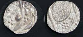 | Description / विवरण | Descrpn./Obv In the centre, a chhatra with Sa and Ta in Gurumukhi script on the left and right of its shaft; traces of the Persian legend seen on the obverse of the bigger Nanakshahi coins of Amritsar mint are also seen. Descrpn./Rev Big peepal leaf and traces of the Persian legend seen on the reverse of the bigger Nanakshahi coins of Amiritsar mint - Shri Amritsarjiv zarb [VS Year] Takht maimanat julus manus Akal Bakht. Especially traces of alif of Akal and te of Takht and maimanat are seen |
