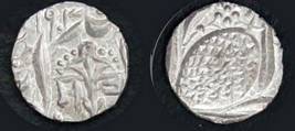 | Description / विवरण | Descrpn./Obv In the centre, a chhatra with Sa and Ta in Gurumukhi script on the left and right of its shaft; traces of the Persian legend seen on the obverse of the bigger Nanakshahi coins of Amritsar mint are also seen. Descrpn./Rev Big peepal leaf and traces of the Persian legend seen on the reverse of the bigger Nanakshahi coins of Amiritsar mint - Shri Amritsarjiv zarb [VS Year] Takht maimanat julus manus Akal Bakht. Especially traces of alif of Akal and te of Takht and maimanat are seen |