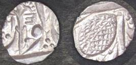 | Description / विवरण | Descrpn./Obv In the centre, a chhatra with Sa and Ta in Gurumukhi script on the left and right of its shaft; traces of the Persian legend seen on the obverse of the bigger Nanakshahi coins of Amritsar mint are also seen. Descrpn./Rev Big peepal leaf and traces of the Persian legend seen on the reverse of the bigger Nanakshahi coins of Amiritsar mint - Shri Amritsarjiv zarb [VS Year] Takht maimanat julus manus Akal Bakht. Especially traces of alif of Akal and te of Takht and maimanat are seen |