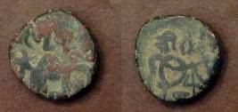 | Description / विवरण | Descrpn./Obv Recumbent bull facing left, wearing jhula (saddle cloth). Above, legend in Sarada script Sri Samantadeva (in cursive letters, mostly truncated and seen partially or off the flan). Descrpn./Rev Rider with lance on caparisoned horse facing right. |