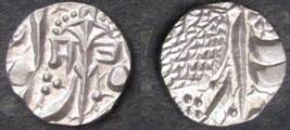 | Description / विवरण | Descrpn./Obv In the centre, a chhatra with Sa and Ta in Gurumukhi script on the left and right of its shaft; traces of the Persian legend seen on the obverse of the bigger Nanakshahi coins of Amritsar mint are also seen. Descrpn./Rev Big peepal leaf and traces of the Persian legend seen on the reverse of the bigger Nanakshahi coins of Amiritsar mint - Shri Amritsarjiv zarb [VS Year] Takht maimanat julus manus Akal Bakht. Especially traces of alif of Akal and te of Takht and maimanat are seen |