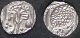 | Description / विवरण | Descrpn./Obv In the centre, a chhatra with Sa and Ta in Gurumukhi script on the left and right of its shaft; traces of the Persian legend seen on the obverse of the bigger Nanakshahi coins of Amritsar mint are also seen. Descrpn./Rev Big peepal leaf and traces of the Persian legend seen on the reverse of the bigger Nanakshahi coins of Amiritsar mint - Shri Amritsarjiv zarb [VS Year] Takht maimanat julus manus Akal Bakht. Especially traces of alif of Akal and te of Takht and maimanat are seen |