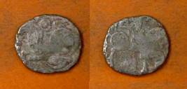 | Description / विवरण | Descrpn./Obv Recumbent bull facing left, wearing jhula (saddle cloth), with trisula (trident) symbol on rump. Above, legend in Sarada script Sri Samantadeva . Descrpn./Rev Rider with lance on caparisoned horse facing right. On left, Sarada letter bhi and on right, Sarada letter ta |