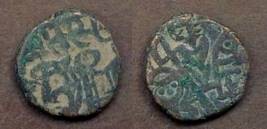 | Description / विवरण | Descrpn./Obv Recumbent bull facing left, wearing jhula (saddle cloth). Above, legend in Sarada script Sri Samantadeva (in cursive letters, mostly truncated and seen partially or off the flan). Descrpn./Rev Rider with lance on caparisoned horse facing right. |