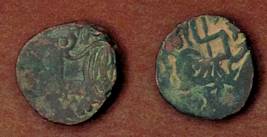 | Description / विवरण | Descrpn./Obv Recumbent bull facing left, wearing jhula (saddle cloth). Above, legend in Sarada script Sri Samantadeva (in cursive letters, mostly truncated and seen partially or off the flan). Descrpn./Rev Rider with lance on caparisoned horse facing right. |