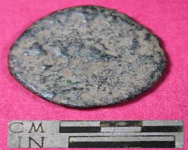 | Description / विवरण | Circular shaped copper coin showing rough surface on the both side. |