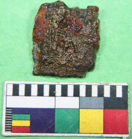 | Description / विवरण | Incrusted coin with square in shaped,swastik symbols are slightly identified and surface of the coin damaged. |