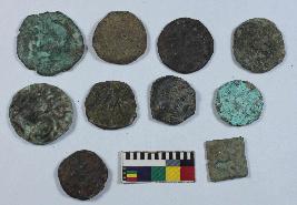 | Description / विवरण | Copper coin having green patches on both obverse and reverse side, legends are not clear. |