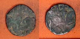 | Description / विवरण | Descrpn./Obv Recumbent bull facing left, wearing jhula (saddle cloth), with trisula (trident) symbol on rump. Above, legend in Sarada script Sri Samantadeva . Descrpn./Rev Rider with lance on caparisoned horse facing right. On left, Sarada letter bhi and on right, Sarada letter ta |