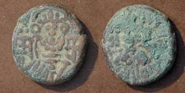 | Description / विवरण | Descrpn./Obv Stylised seated Goddess facing; Sharada legend, Sri (on l.) Sussala (on r.). Descrpn./Rev Stylised standing king design; Sharada legend, deva (on r.) |