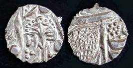 | Description / विवरण | Descrpn./Obv In the centre, a chhatra with Sa and Ta in Gurumukhi script on the left and right of its shaft; traces of the Persian legend seen on the obverse of the bigger Nanakshahi coins of Amritsar mint are also seen. Descrpn./Rev Big peepal leaf and traces of the Persian legend seen on the reverse of the bigger Nanakshahi coins of Amiritsar mint - Shri Amritsarjiv zarb [VS Year] Takht maimanat julus manus Akal Bakht. Especially traces of alif of Akal and te of Takht and maimanat are seen |