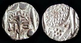 | Description / विवरण | Descrpn./Obv In the centre, a chhatra with Sa and Ta in Gurumukhi script on the left and right of its shaft; traces of the Persian legend seen on the obverse of the bigger Nanakshahi coins of Amritsar mint are also seen. Descrpn./Rev Big peepal leaf and traces of the Persian legend seen on the reverse of the bigger Nanakshahi coins of Amiritsar mint - Shri Amritsarjiv zarb [VS Year] Takht maimanat julus manus Akal Bakht. Especially traces of alif of Akal and te of Takht and maimanat are seen |