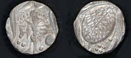 | Description / विवरण | Descrpn./Obv In the centre, a chhatra with Sa and Ta in Gurumukhi script on the left and right of its shaft; traces of the Persian legend seen on the obverse of the bigger Nanakshahi coins of Amritsar mint are also seen. Descrpn./Rev Big peepal leaf and traces of the Persian legend seen on the reverse of the bigger Nanakshahi coins of Amiritsar mint - Shri Amritsarjiv zarb [VS Year] Takht maimanat julus manus Akal Bakht. Especially traces of alif of Akal and te of Takht and maimanat are seen |
