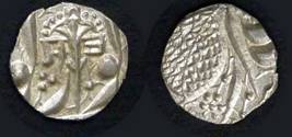 | Description / विवरण | Descrpn./Obv In the centre, a chhatra with Sa and Ta in Gurumukhi script on the left and right of its shaft; traces of the Persian legend seen on the obverse of the bigger Nanakshahi coins of Amritsar mint are also seen. Descrpn./Rev Big peepal leaf and traces of the Persian legend seen on the reverse of the bigger Nanakshahi coins of Amiritsar mint - Shri Amritsarjiv zarb [VS Year] Takht maimanat julus manus Akal Bakht. Especially traces of alif of Akal and te of Takht and maimanat are seen |