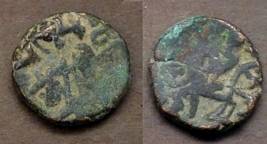 | Description / विवरण | Descrpn./Obv Recumbent bull facing left, wearing jhula (saddle cloth). Above, legend in Sarada script Sri Samantadeva (in cursive letters, mostly truncated and seen partially or off the flan). Descrpn./Rev Rider with lance on caparisoned horse facing right. |