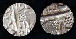 | Description / विवरण | Descrpn./Obv In the centre, a chhatra with Sa and Ta in Gurumukhi script on the left and right of its shaft; traces of the Persian legend seen on the obverse of the bigger Nanakshahi coins of Amritsar mint are also seen. Descrpn./Rev Big peepal leaf and traces of the Persian legend seen on the reverse of the bigger Nanakshahi coins of Amiritsar mint - Shri Amritsarjiv zarb [VS Year] Takht maimanat julus manus Akal Bakht. Especially traces of alif of Akal and te of Takht and maimanat are seen |