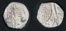| Description / विवरण | Descrpn./Obv In the centre, a chhatra with Sa and Ta in Gurumukhi script on the left and right of its shaft; traces of the Persian legend seen on the obverse of the bigger Nanakshahi coins of Amritsar mint are also seen. Descrpn./Rev Big peepal leaf and traces of the Persian legend seen on the reverse of the bigger Nanakshahi coins of Amiritsar mint - Shri Amritsarjiv zarb [VS Year] Takht maimanat julus manus Akal Bakht. Especially traces of alif of Akal and te of Takht and maimanat are seen |