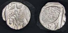 | Description / विवरण | Descrpn./Obv In the centre, a chhatra with Sa and Ta in Gurumukhi script on the left and right of its shaft; traces of the Persian legend seen on the obverse of the bigger Nanakshahi coins of Amritsar mint are also seen. Descrpn./Rev Big peepal leaf and traces of the Persian legend seen on the reverse of the bigger Nanakshahi coins of Amiritsar mint - Shri Amritsarjiv zarb [VS Year] Takht maimanat julus manus Akal Bakht. Especially traces of alif of Akal and te of Takht and maimanat are seen |