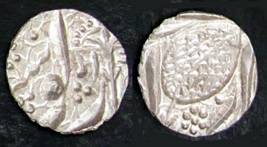 | Description / विवरण | Descrpn./Obv In the centre, a chhatra with Sa and Ta in Gurumukhi script on the left and right of its shaft; traces of the Persian legend seen on the obverse of the bigger Nanakshahi coins of Amritsar mint are also seen. Descrpn./Rev Big peepal leaf and traces of the Persian legend seen on the reverse of the bigger Nanakshahi coins of Amiritsar mint - Shri Amritsarjiv zarb [VS Year] Takht maimanat julus manus Akal Bakht. Especially traces of alif of Akal and te of Takht and maimanat are seen |