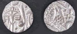 | Description / विवरण | Descrpn./Obv In the centre, a chhatra with Sa and Ta in Gurumukhi script on the left and right of its shaft; traces of the Persian legend seen on the obverse of the bigger Nanakshahi coins of Amritsar mint are also seen. Descrpn./Rev Big peepal leaf and traces of the Persian legend seen on the reverse of the bigger Nanakshahi coins of Amiritsar mint - Shri Amritsarjiv zarb [VS Year] Takht maimanat julus manus Akal Bakht. Especially traces of alif of Akal and te of Takht and maimanat are seen |
