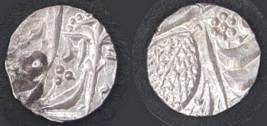 | Description / विवरण | Descrpn./Obv In the centre, a chhatra with Sa and Ta in Gurumukhi script on the left and right of its shaft; traces of the Persian legend seen on the obverse of the bigger Nanakshahi coins of Amritsar mint are also seen. Descrpn./Rev Big peepal leaf and traces of the Persian legend seen on the reverse of the bigger Nanakshahi coins of Amiritsar mint - Shri Amritsarjiv zarb [VS Year] Takht maimanat julus manus Akal Bakht. Especially traces of alif of Akal and te of Takht and maimanat are seen |