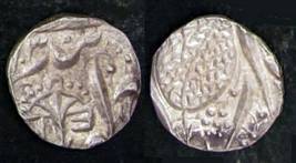 | Description / विवरण | Descrpn./Obv In the centre, a chhatra with Sa and Ta in Gurumukhi script on the left and right of its shaft; traces of the Persian legend seen on the obverse of the bigger Nanakshahi coins of Amritsar mint are also seen. Descrpn./Rev Big peepal leaf and traces of the Persian legend seen on the reverse of the bigger Nanakshahi coins of Amiritsar mint - Shri Amritsarjiv zarb [VS Year] Takht maimanat julus manus Akal Bakht. Especially traces of alif of Akal and te of Takht and maimanat are seen |