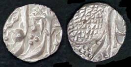 | Description / विवरण | Descrpn./Obv In the centre, a chhatra with Sa and Ta in Gurumukhi script on the left and right of its shaft; traces of the Persian legend seen on the obverse of the bigger Nanakshahi coins of Amritsar mint are also seen. Descrpn./Rev Big peepal leaf and traces of the Persian legend seen on the reverse of the bigger Nanakshahi coins of Amiritsar mint - Shri Amritsarjiv zarb [VS Year] Takht maimanat julus manus Akal Bakht. Especially traces of alif of Akal and te of Takht and maimanat are seen |