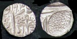 | Description / विवरण | Descrpn./Obv In the centre, a chhatra with Sa and Ta in Gurumukhi script on the left and right of its shaft; traces of the Persian legend seen on the obverse of the bigger Nanakshahi coins of Amritsar mint are also seen. Descrpn./Rev Big peepal leaf and traces of the Persian legend seen on the reverse of the bigger Nanakshahi coins of Amiritsar mint - Shri Amritsarjiv zarb [VS Year] Takht maimanat julus manus Akal Bakht. Especially traces of alif of Akal and te of Takht and maimanat are seen |