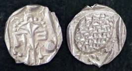 | Description / विवरण | Descrpn./Obv In the centre, a chhatra with Sa and Ta in Gurumukhi script on the left and right of its shaft; traces of the Persian legend seen on the obverse of the bigger Nanakshahi coins of Amritsar mint are also seen. Descrpn./Rev Big peepal leaf and traces of the Persian legend seen on the reverse of the bigger Nanakshahi coins of Amiritsar mint - Shri Amritsarjiv zarb [VS Year] Takht maimanat julus manus Akal Bakht. Especially traces of alif of Akal and te of Takht and maimanat are seen |