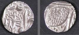 | Description / विवरण | Descrpn./Obv In the centre, a chhatra with Sa and Ta in Gurumukhi script on the left and right of its shaft; traces of the Persian legend seen on the obverse of the bigger Nanakshahi coins of Amritsar mint are also seen. Descrpn./Rev Big peepal leaf and traces of the Persian legend seen on the reverse of the bigger Nanakshahi coins of Amiritsar mint - Shri Amritsarjiv zarb [VS Year] Takht maimanat julus manus Akal Bakht. Especially traces of alif of Akal and te of Takht and maimanat are seen |