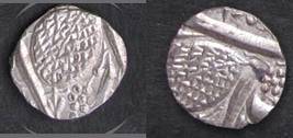 | Description / विवरण | Descrpn./Obv In the centre, a chhatra with Sa and Ta in Gurumukhi script on the left and right of its shaft; traces of the Persian legend seen on the obverse of the bigger Nanakshahi coins of Amritsar mint are also seen. Descrpn./Rev Big peepal leaf and traces of the Persian legend seen on the reverse of the bigger Nanakshahi coins of Amiritsar mint - Shri Amritsarjiv zarb [VS Year] Takht maimanat julus manus Akal Bakht. Especially traces of alif of Akal and te of Takht and maimanat are seen |