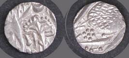 | Description / विवरण | Descrpn./Obv In the centre, a chhatra with Sa and Ta in Gurumukhi script on the left and right of its shaft; traces of the Persian legend seen on the obverse of the bigger Nanakshahi coins of Amritsar mint are also seen. Descrpn./Rev Big peepal leaf and traces of the Persian legend seen on the reverse of the bigger Nanakshahi coins of Amiritsar mint - Shri Amritsarjiv zarb [VS Year] Takht maimanat julus manus Akal Bakht. Especially traces of alif of Akal and te of Takht and maimanat are seen |