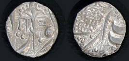 | Description / विवरण | Descrpn./Obv In the centre, a chhatra with Sa and Ta in Gurumukhi script on the left and right of its shaft; traces of the Persian legend seen on the obverse of the bigger Nanakshahi coins of Amritsar mint are also seen. Descrpn./Rev Big peepal leaf and traces of the Persian legend seen on the reverse of the bigger Nanakshahi coins of Amiritsar mint - Shri Amritsarjiv zarb [VS Year] Takht maimanat julus manus Akal Bakht. Especially traces of alif of Akal and te of Takht and maimanat are seen |