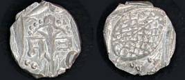 | Description / विवरण | Descrpn./Obv In the centre, a chhatra with Sa and Ta in Gurumukhi script on the left and right of its shaft; traces of the Persian legend seen on the obverse of the bigger Nanakshahi coins of Amritsar mint are also seen. Descrpn./Rev Big peepal leaf and traces of the Persian legend seen on the reverse of the bigger Nanakshahi coins of Amiritsar mint - Shri Amritsarjiv zarb [VS Year] Takht maimanat julus manus Akal Bakht. Especially traces of alif of Akal and te of Takht and maimanat are seen |