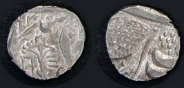 | Description / विवरण | Descrpn./Obv In the centre, a chhatra with Sa and Ta in Gurumukhi script on the left and right of its shaft; traces of the Persian legend seen on the obverse of the bigger Nanakshahi coins of Amritsar mint are also seen. Descrpn./Rev Big peepal leaf and traces of the Persian legend seen on the reverse of the bigger Nanakshahi coins of Amiritsar mint - Shri Amritsarjiv zarb [VS Year] Takht maimanat julus manus Akal Bakht. Especially traces of alif of Akal and te of Takht and maimanat are seen |