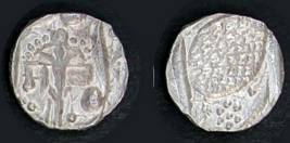 | Description / विवरण | Descrpn./Obv In the centre, a chhatra with Sa and Ta in Gurumukhi script on the left and right of its shaft; traces of the Persian legend seen on the obverse of the bigger Nanakshahi coins of Amritsar mint are also seen. Descrpn./Rev Big peepal leaf and traces of the Persian legend seen on the reverse of the bigger Nanakshahi coins of Amiritsar mint - Shri Amritsarjiv zarb [VS Year] Takht maimanat julus manus Akal Bakht. Especially traces of alif of Akal and te of Takht and maimanat are seen |