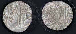 | Description / विवरण | Descrpn./Obv In the centre, a chhatra with Sa and Ta in Gurumukhi script on the left and right of its shaft; traces of the Persian legend seen on the obverse of the bigger Nanakshahi coins of Amritsar mint are also seen. Descrpn./Rev Big peepal leaf and traces of the Persian legend seen on the reverse of the bigger Nanakshahi coins of Amiritsar mint - Shri Amritsarjiv zarb [VS Year] Takht maimanat julus manus Akal Bakht. Especially traces of alif of Akal and te of Takht and maimanat are seen |
