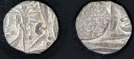 | Description / विवरण | Descrpn./Obv In the centre, a chhatra with Sa and Ta in Gurumukhi script on the left and right of its shaft; traces of the Persian legend seen on the obverse of the bigger Nanakshahi coins of Amritsar mint are also seen. Descrpn./Rev Big peepal leaf and traces of the Persian legend seen on the reverse of the bigger Nanakshahi coins of Amiritsar mint - Shri Amritsarjiv zarb [VS Year] Takht maimanat julus manus Akal Bakht. Especially traces of alif of Akal and te of Takht and maimanat are seen |