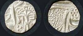 | Description / विवरण | Descrpn./Obv In the centre, a chhatra with Sa and Ta in Gurumukhi script on the left and right of its shaft; traces of the Persian legend seen on the obverse of the bigger Nanakshahi coins of Amritsar mint are also seen. Descrpn./Rev Big peepal leaf and traces of the Persian legend seen on the reverse of the bigger Nanakshahi coins of Amiritsar mint - Shri Amritsarjiv zarb [VS Year] Takht maimanat julus manus Akal Bakht. Especially traces of alif of Akal and te of Takht and maimanat are seen |